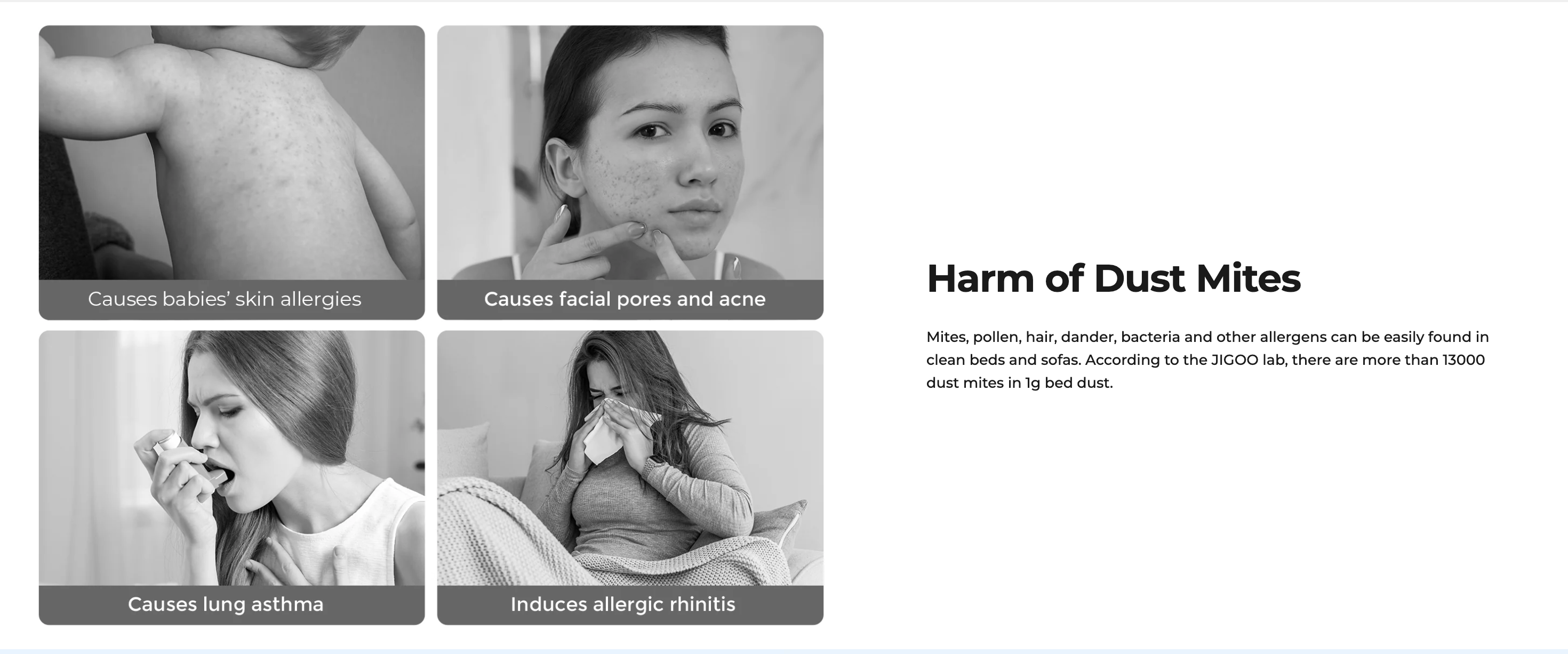 Colchones, sofás, alfombras e incluso asientos de coche esconden millones de ácaros del polvo y bacterias que las aspiradoras convencionales no pueden eliminar. Estos provocan alergias, asma y problemas de sueño. Nuestra tecnología UV-C penetra las fibras, neutralizando a estos invasores invisibles en su origen.
