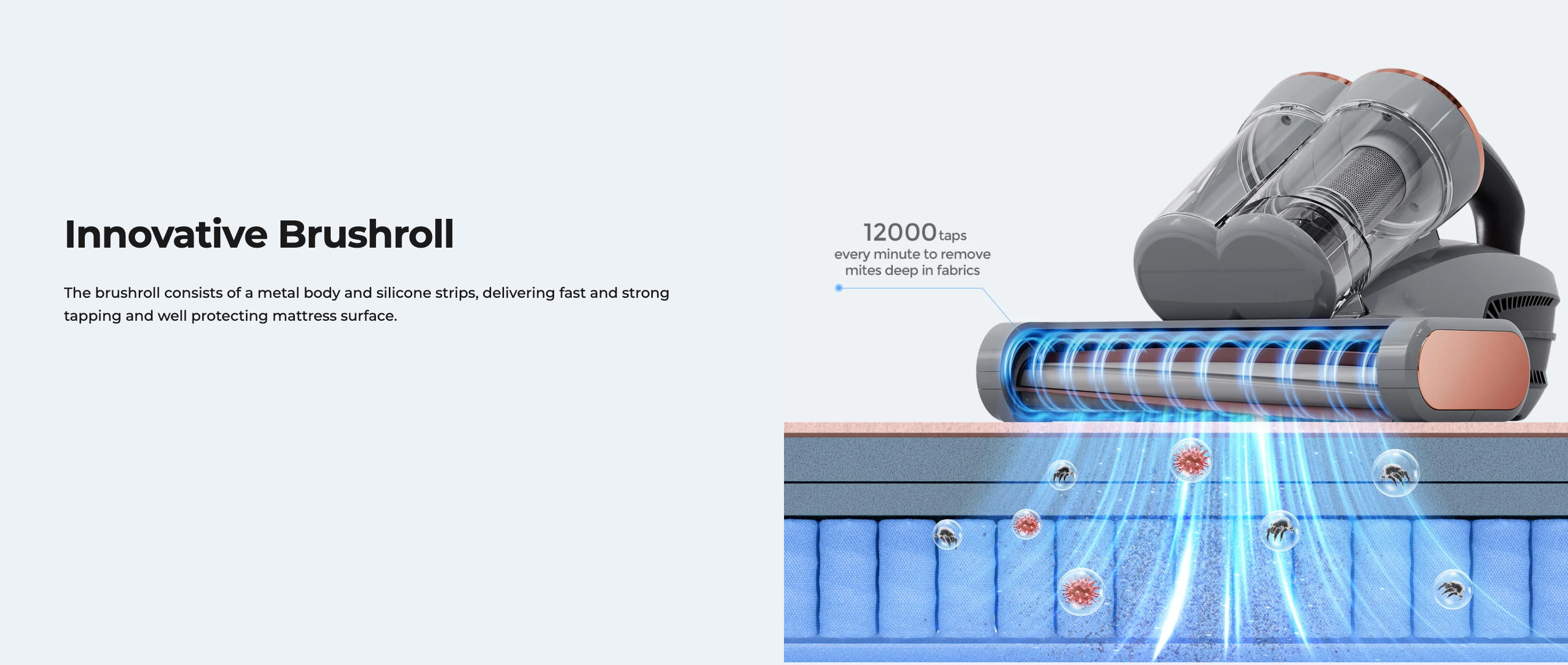✅ Limpieza profunda potente : succión de 16 000 Pa + vibración ultrasónica y golpeteo de 5000 rpm que elimina el cabello, el polvo y los residuos incrustados de colchones y telas.