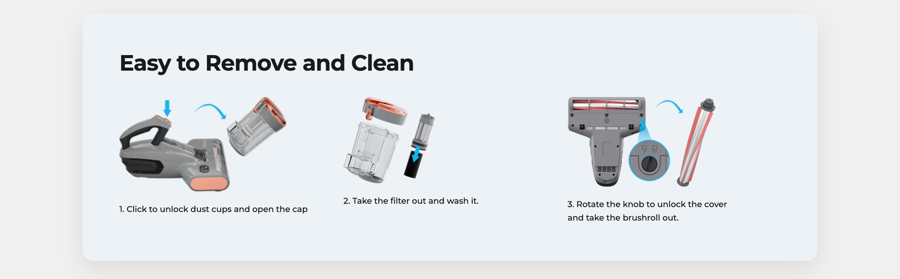✅ Sistema avanzado de doble copa + HEPA : separa el polvo de la filtración y captura el 99,98 % de partículas tan pequeñas como 0,3 μm para un aire más limpio.